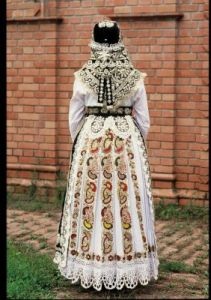 Ženska svečana nošnja vezenka. - original. - početak 20. stoljeća. - Zapadni Srijem - Bapska. - Posudionica i radionica narodnih nošnji PRNN-18-01-04-001; 18-02-04-008; 18-03-04-004; 18-05-01-022; 18-06-04-004; 18-07-06-023; 18-10-04-002.